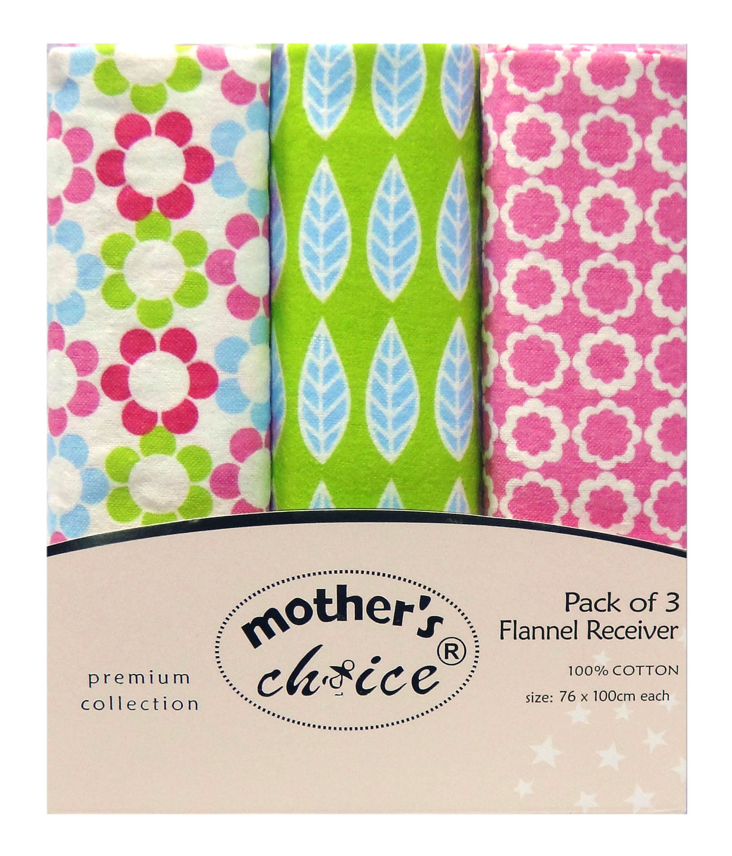 100% COTTON 3 PACK RECEIVING BLANKETS 'FLOWER'