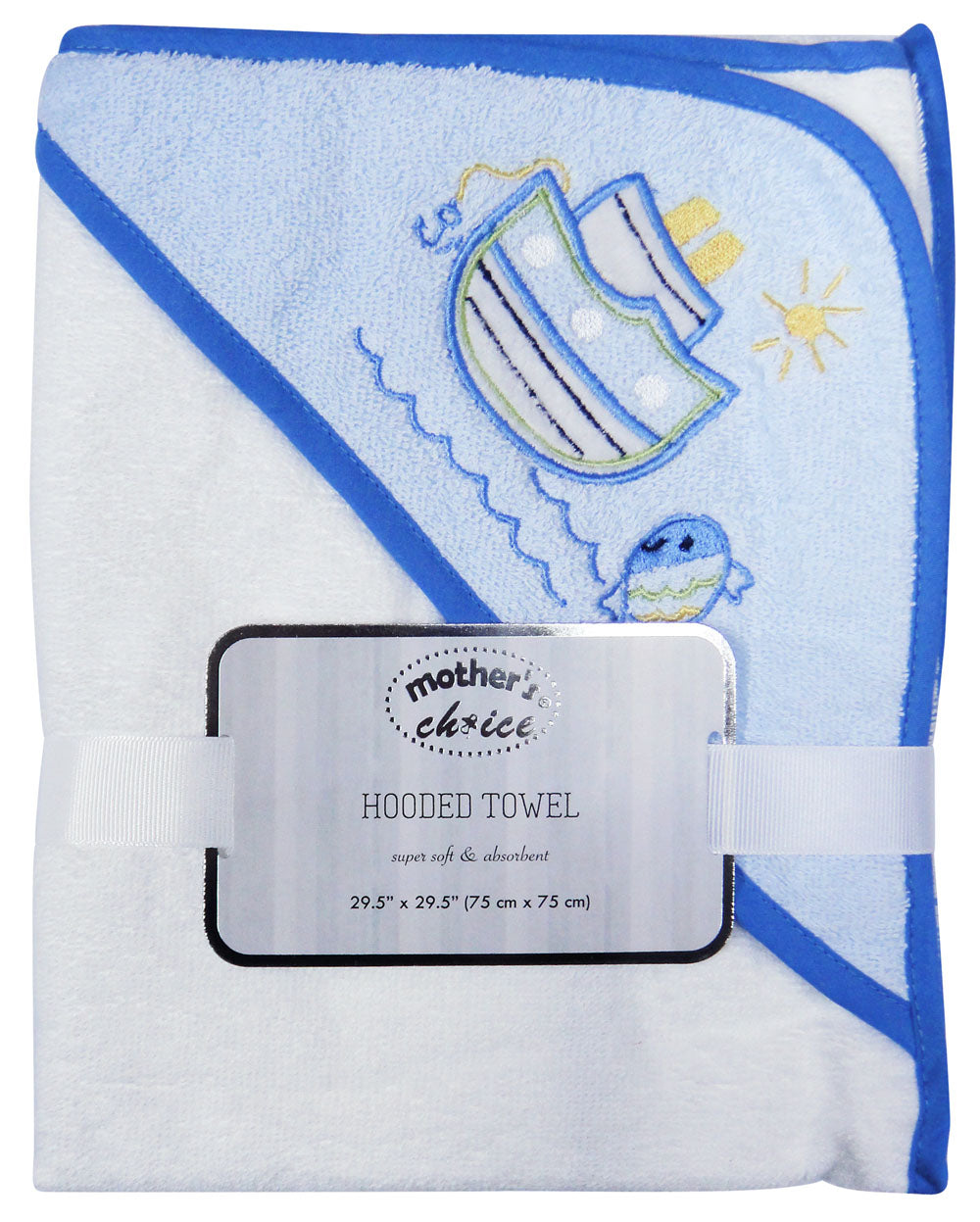 100% COTTON HOODED TOWEL 'BOAT' WHT-BLUE HOOD