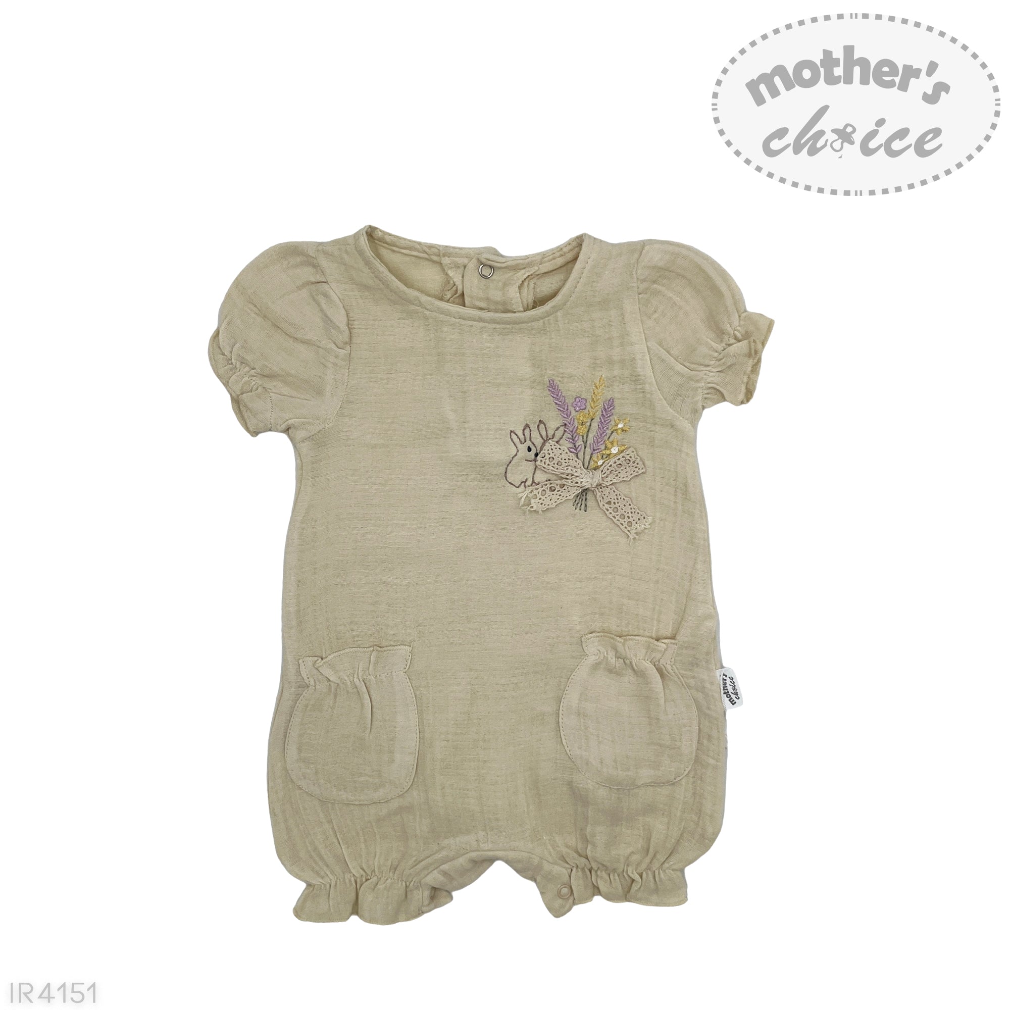 M/C MUSLIN S/L ROMPER BEIGE 6M