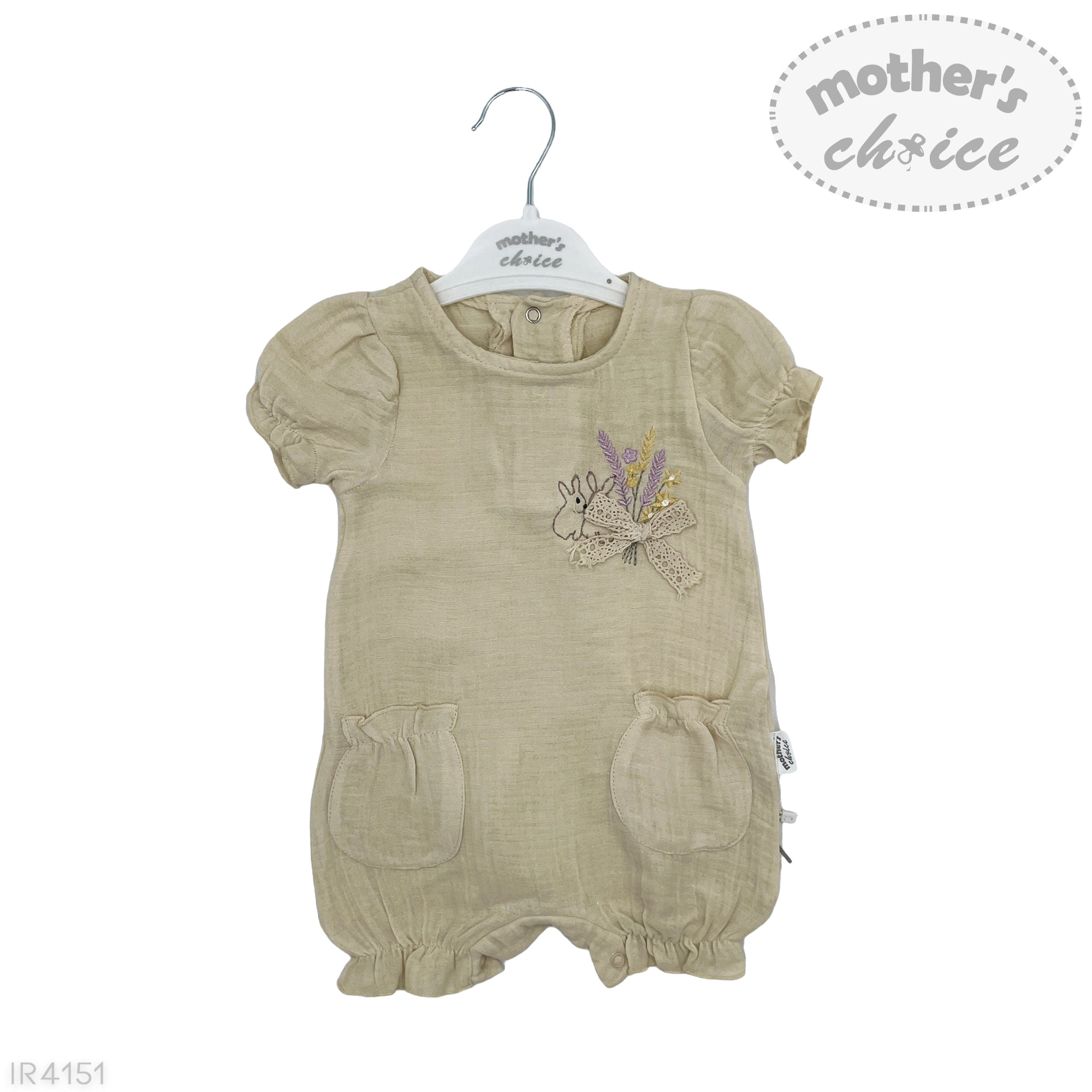 M/C MUSLIN S/L ROMPER BEIGE 9M