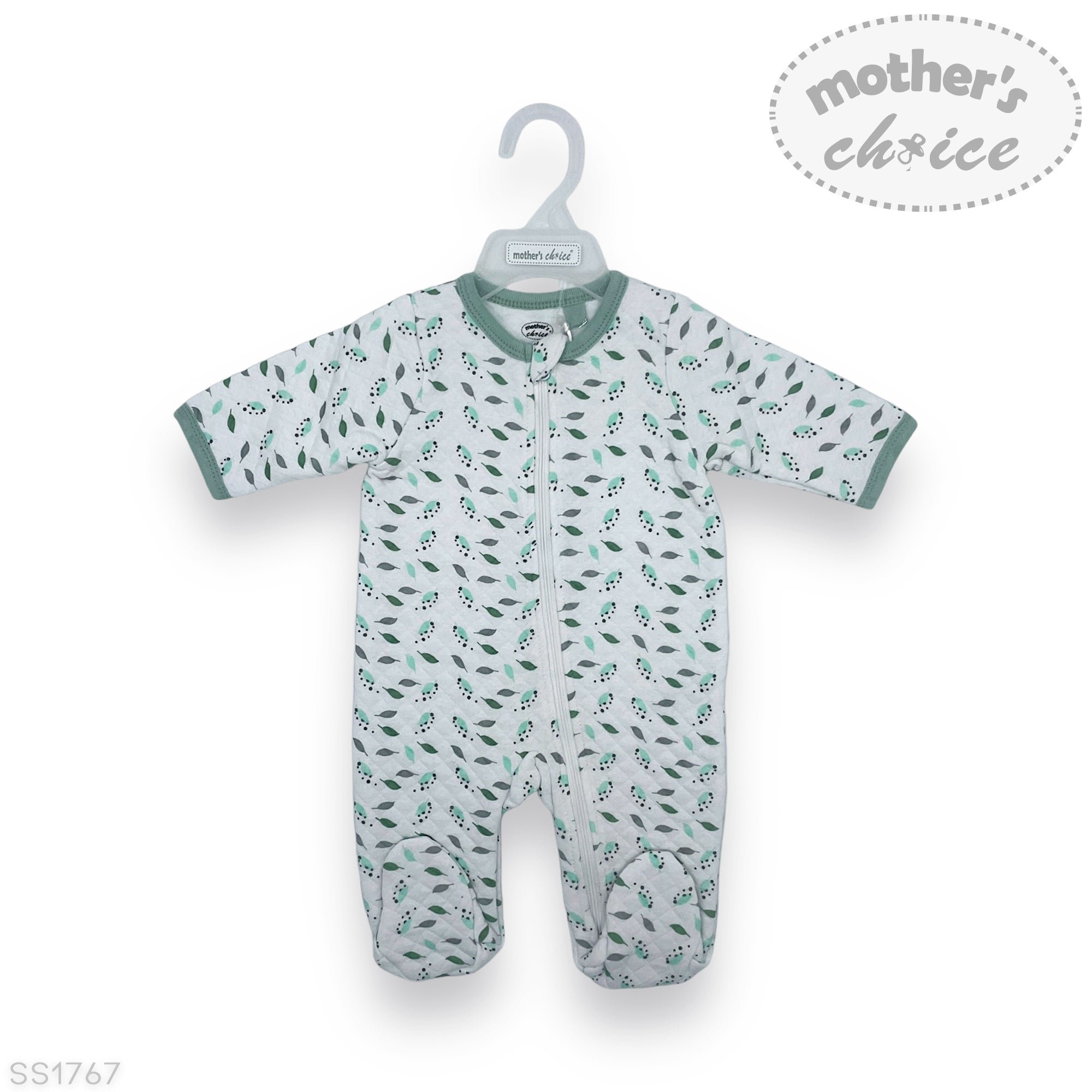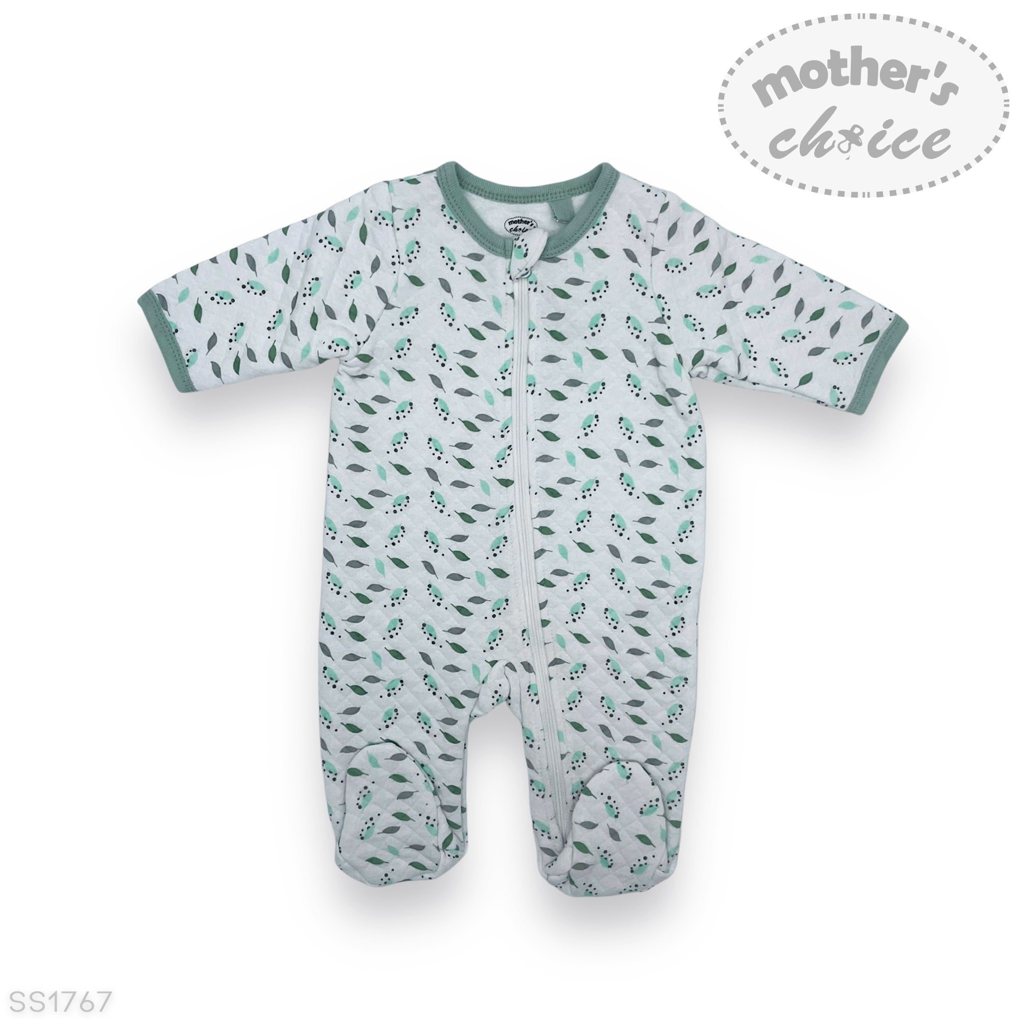 M/C QUILTED GROWER 'SAGE/GREY LEAF' 0-3M