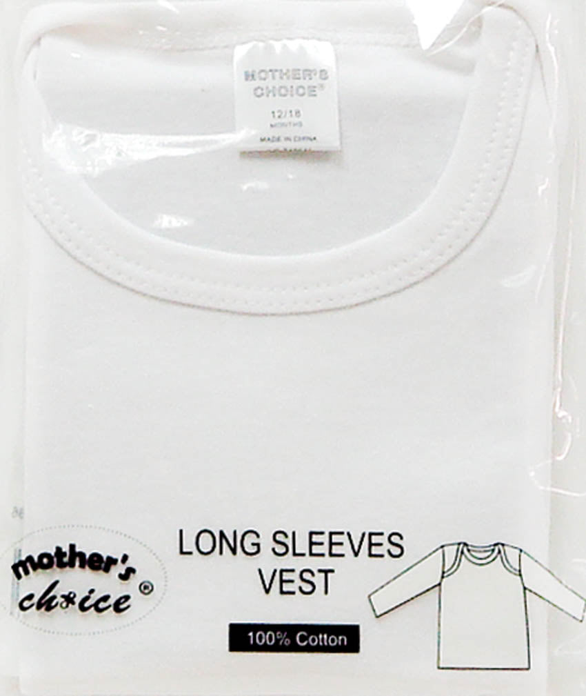INFANTS LONG SLEEVE VESTS WHITE 6-12 MONTHS