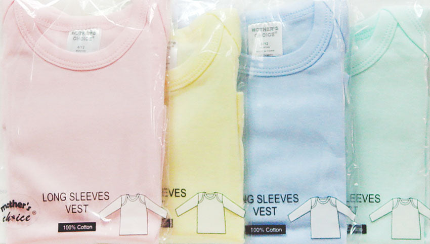 INFANTS LONG SLEEVE VESTS PASTAL 0-3 MONTHS
