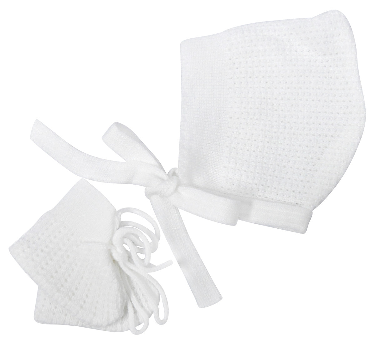 INFANTS KNITTED BOOTIE AND BONNET SETS WHITE
