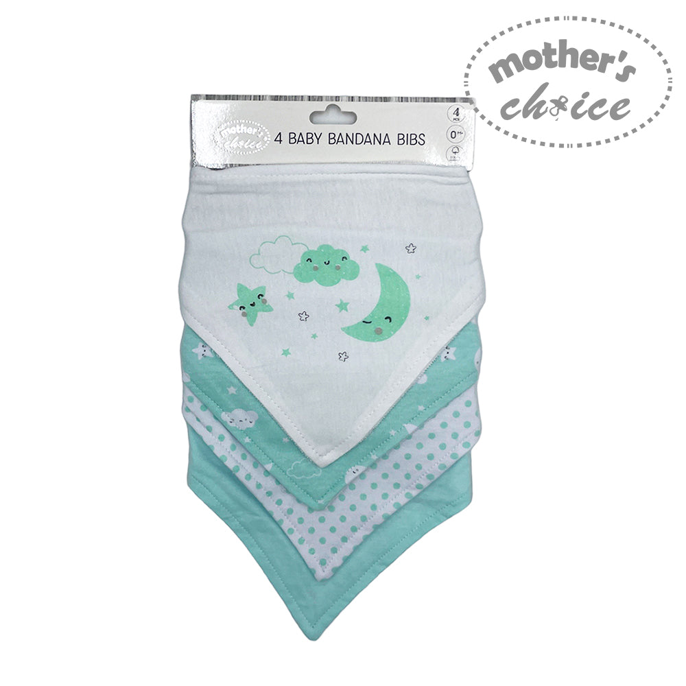 MC BABY 100% COTTON 4 PACK BANDANA BIB SET - CLOUDS
