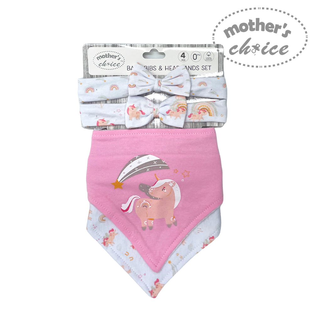 MC BABY 100% COTTON BIB AND HEADBAND SET - UNICORN