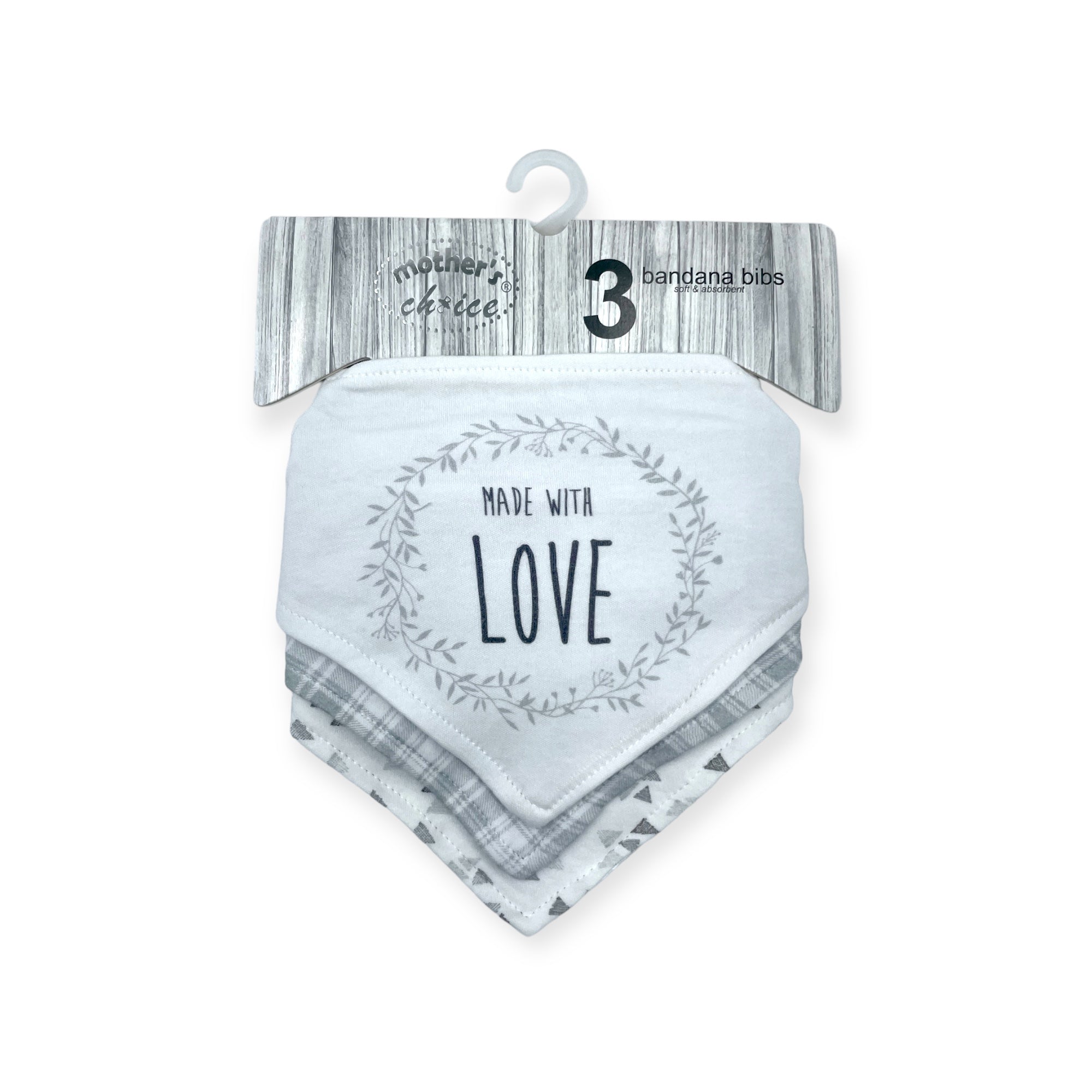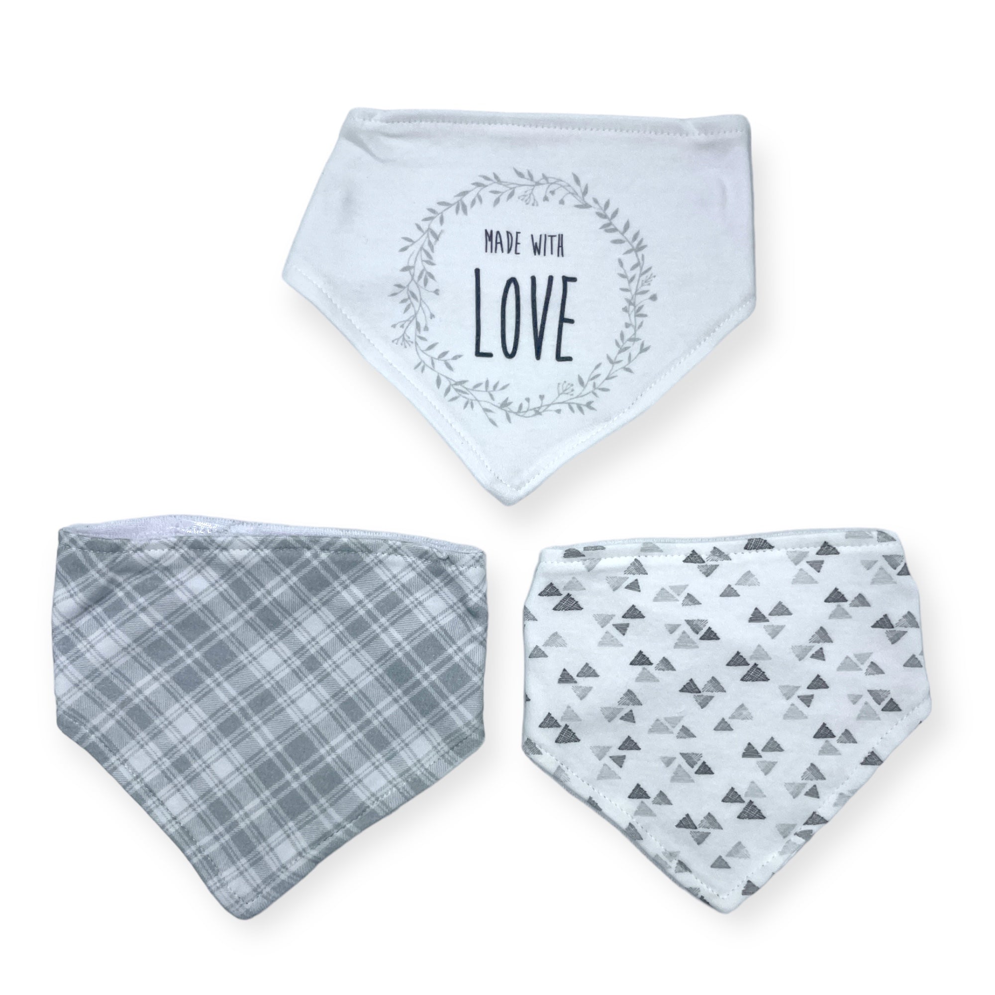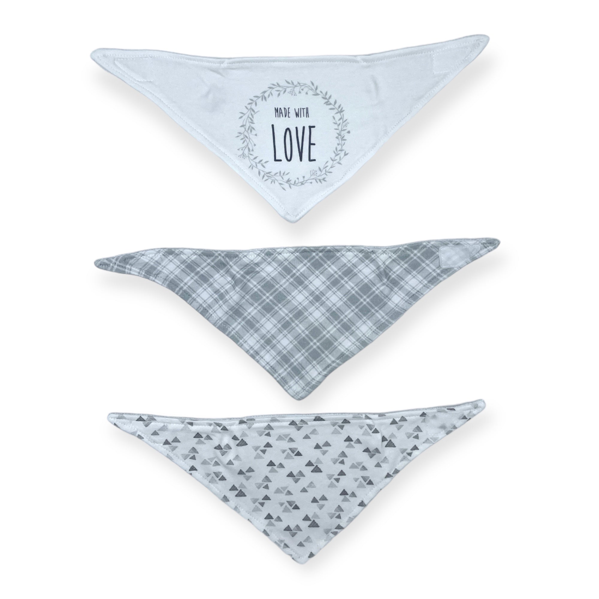 M/C 3 PACK BANDANA BIB SET LOVE-GREY