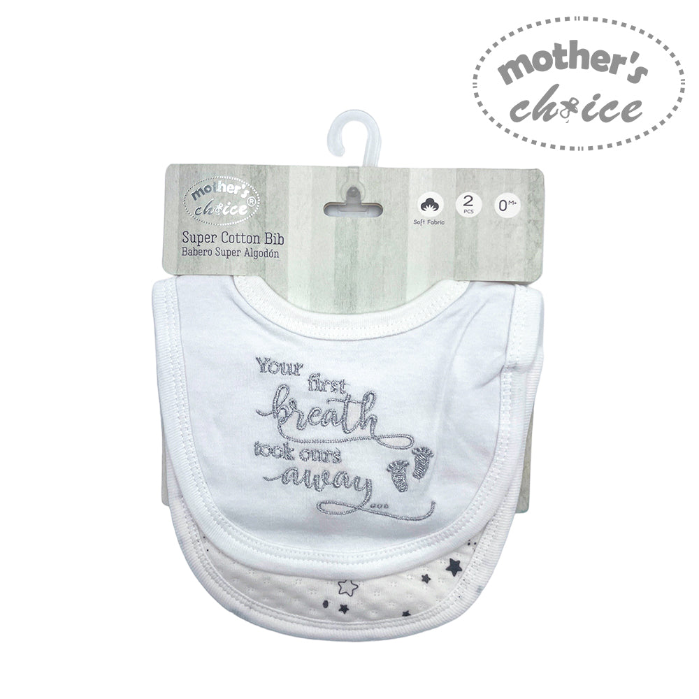 MC BABY 100% COTTON 2 PACK BIBS - YOUR FIRST BREATH TOOK OURS AWAY