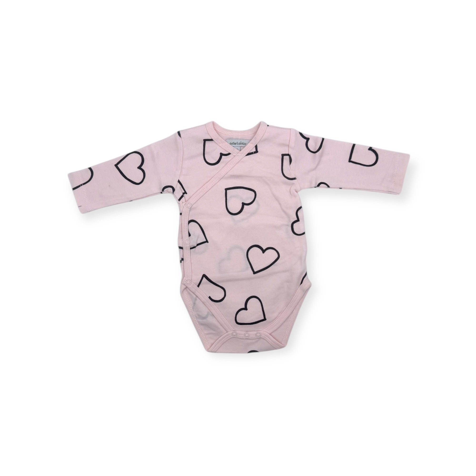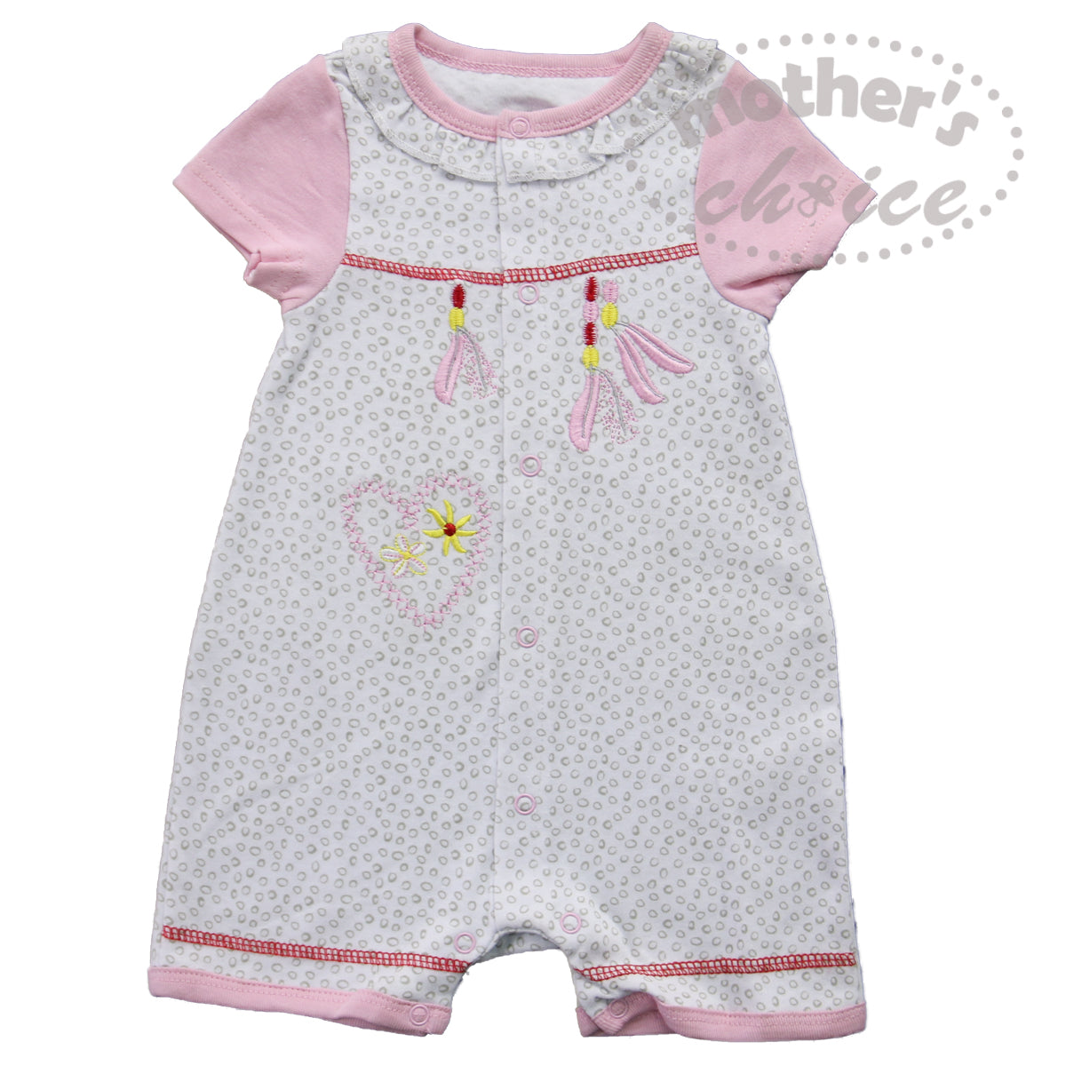 M/C 100% COTTON SIDE BUTTON ROMPER ROSE 0-3M