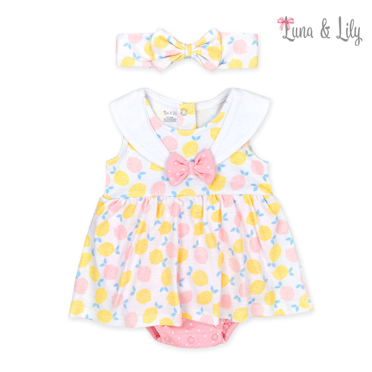 100% COTTON LUNA AND LILY 2PC ROMPER SET WITH HEADBAND