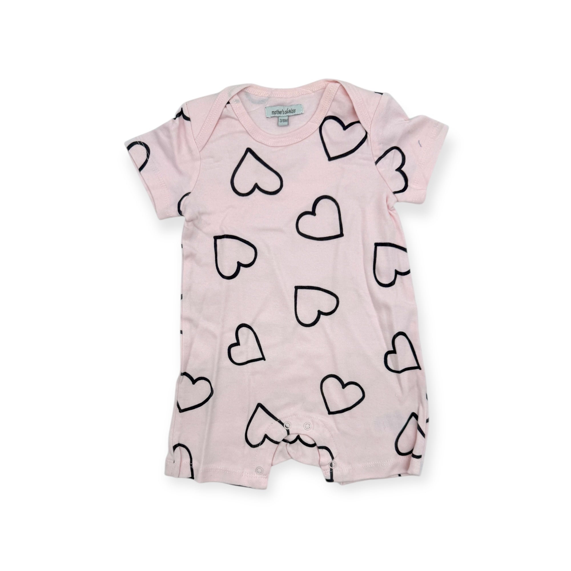 M/C 100% COTTON SIDE BUTTON ROMPER ROSE 6-9M