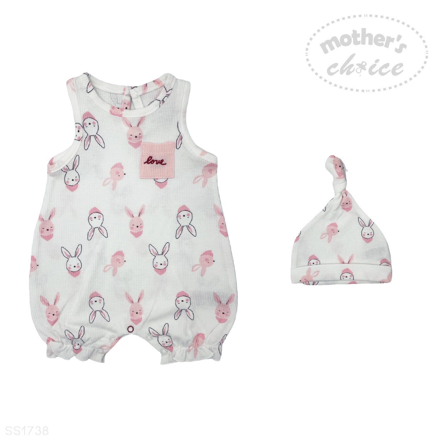 INF SLEEVELESS ROMPER WITH KNOTTY HAT BUNNY 6-9M
