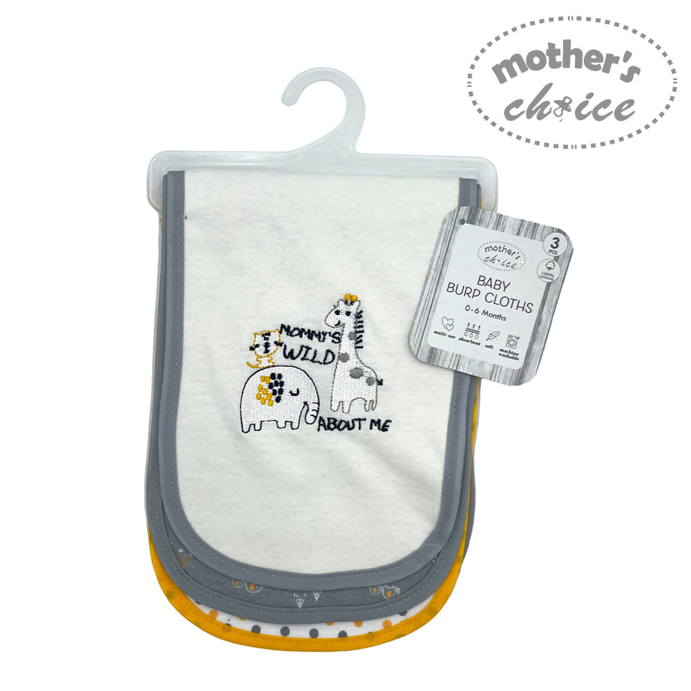 MC BABY 100% COTTON 3 PACK BURP CLOTHS - ELEPHANT