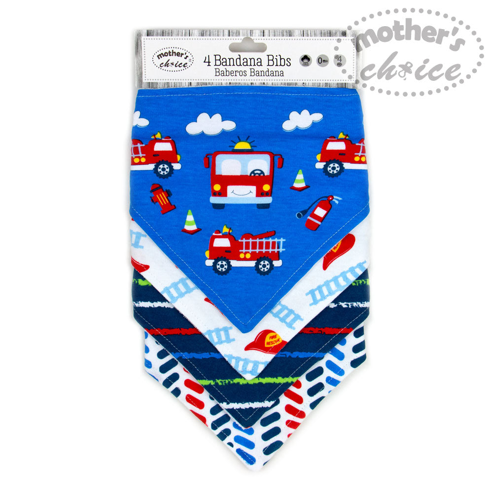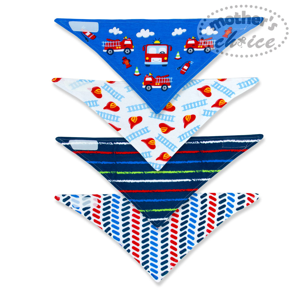 BOYS 4 PACK BANDANA BIB 'FIRE ENGINE'