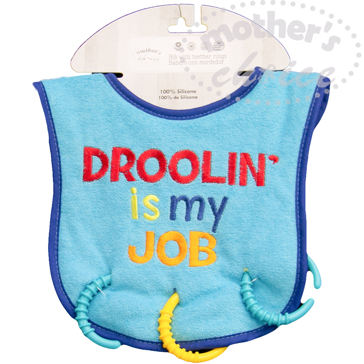 BIB WITH TEETHER RINGS - DROOLIN IS MY JOB (BLUE)