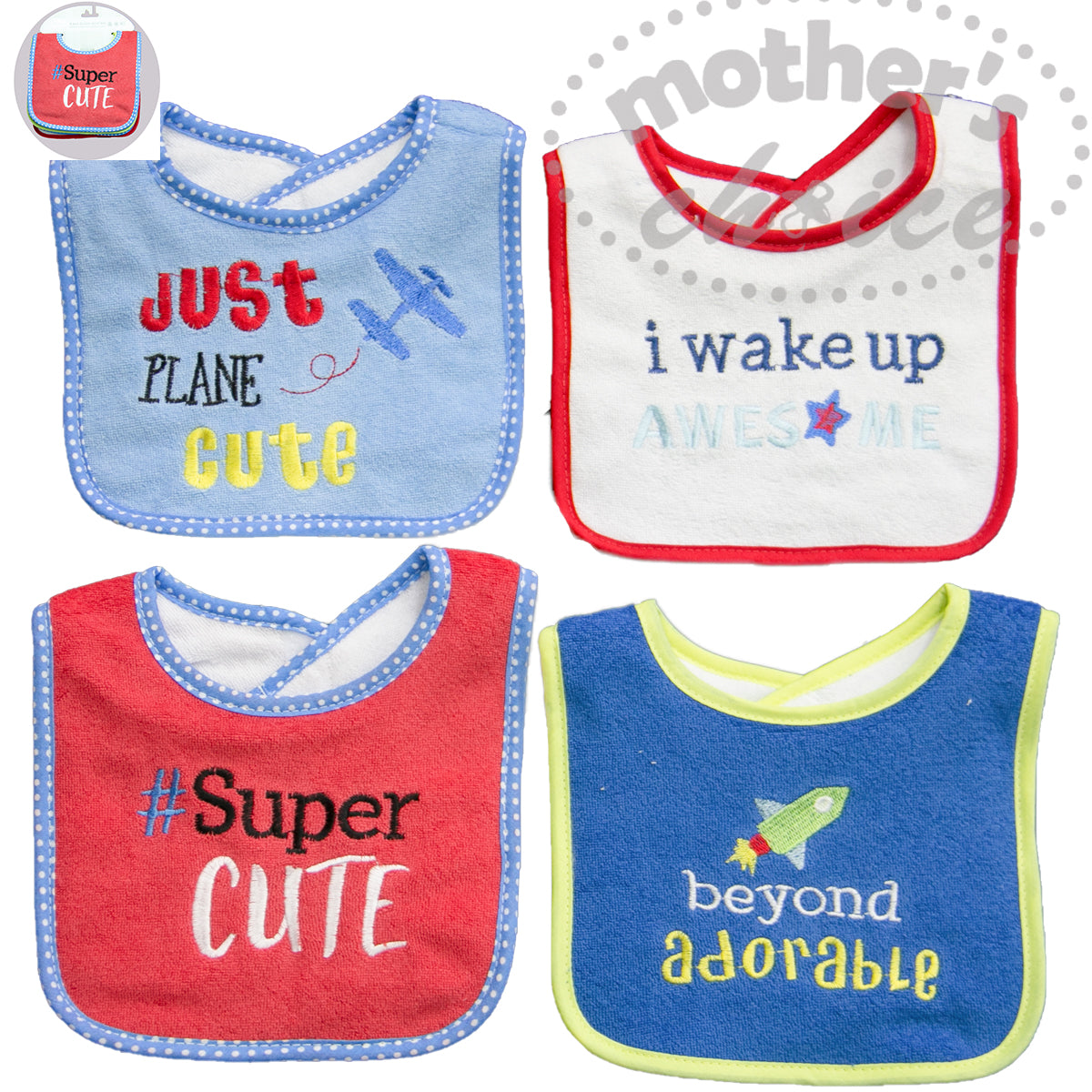 4 PACK EMBROIDED DRIBBLE PROOF BIBS - JUST PLANE CUTE