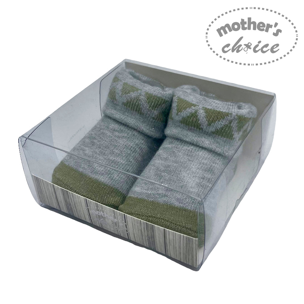 M/C FANCY BOX SOCKS 'OLIVE/GREY PATTERN'