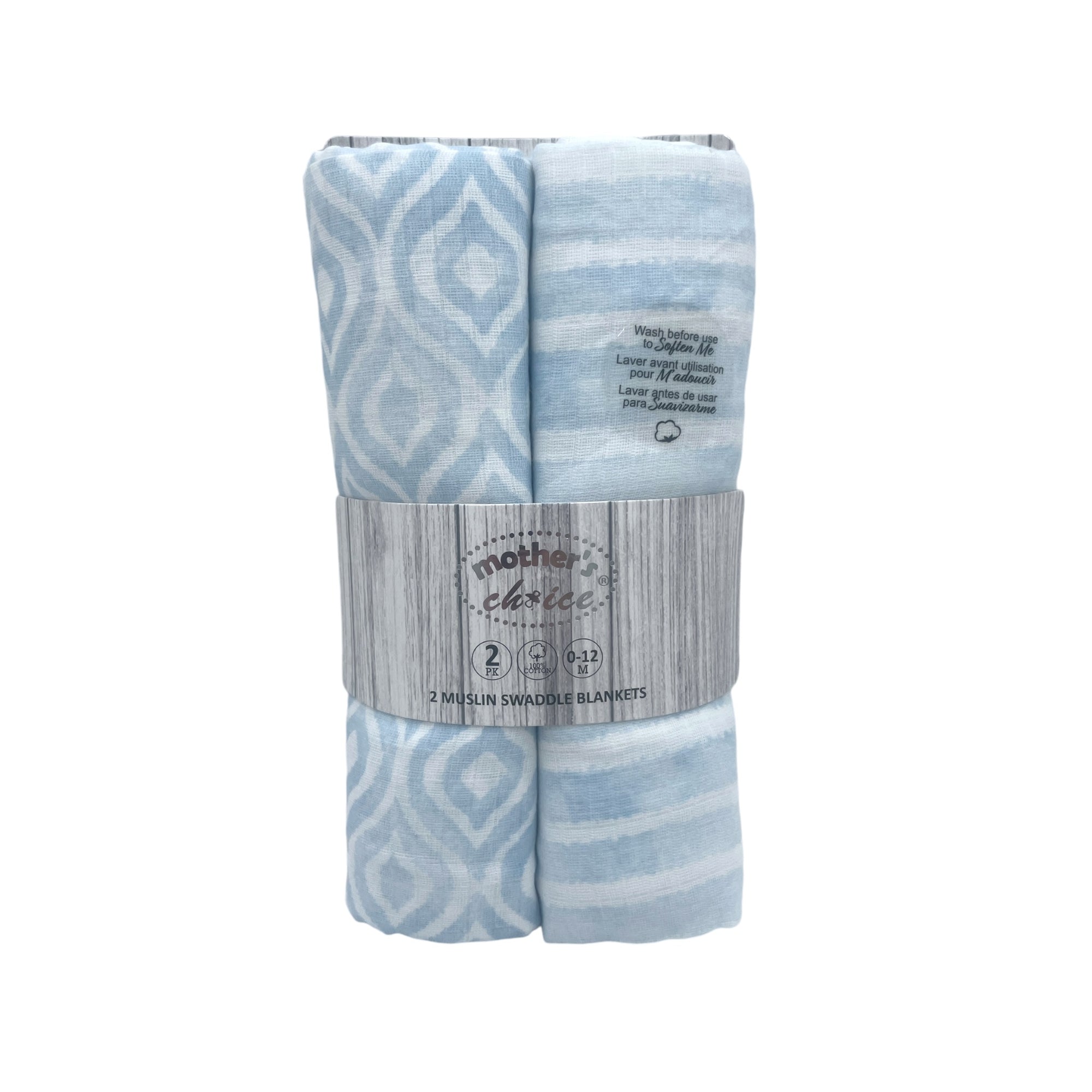 M/C 2 MUSLIN SWADDLE BLANKETS BLUE
