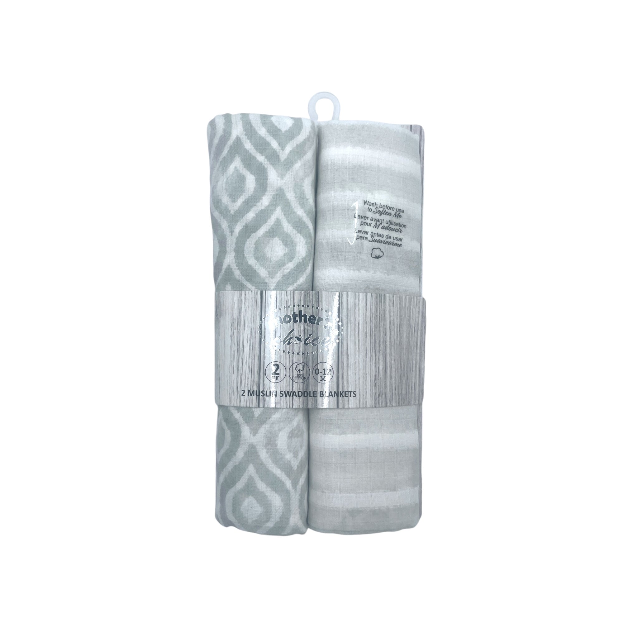 M/C 2 MUSLIN SWADDLE BLANKETS GREY