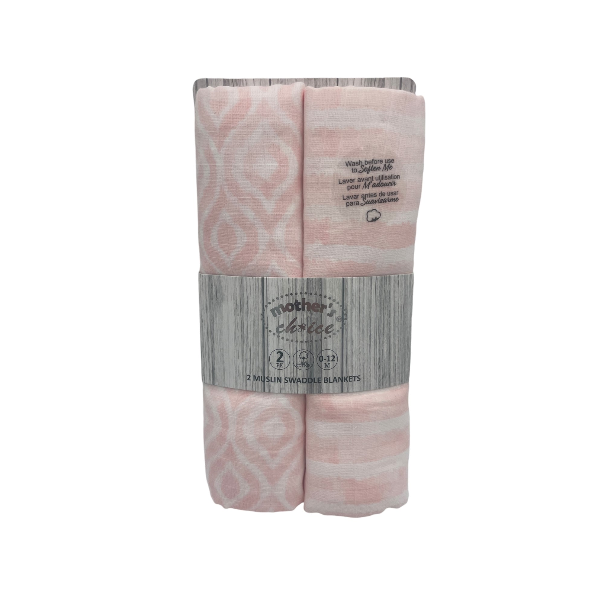 M/C 2 MUSLIN SWADDLE BLANKETS PINK
