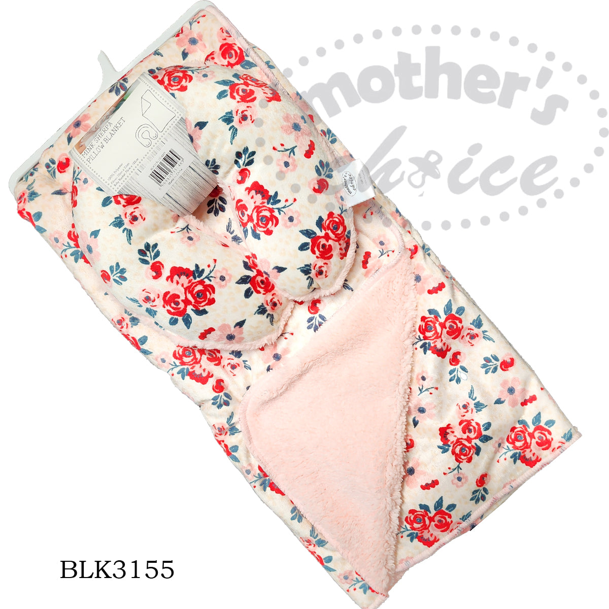 MC PILLOW BLANKET - RED FLOWER AND BLUE LEAVES