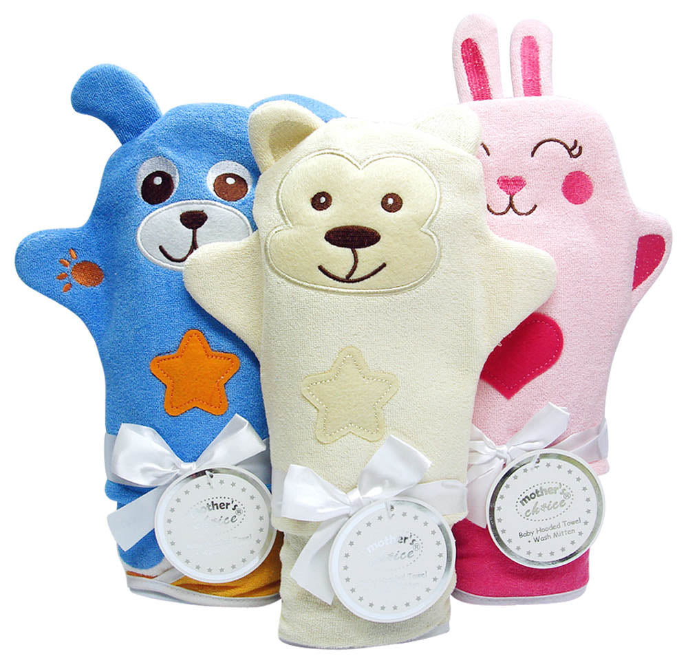 HOODED TOWEL SET WITH MIITTEN CREATURES